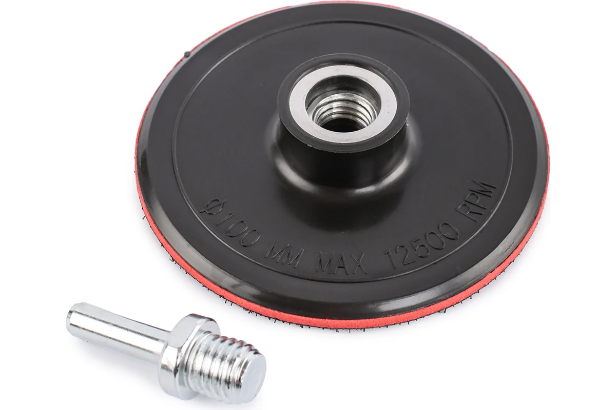 Опорная тарелка совместима сугловыми шлифовальными машинами(посадочное место М14), а так-же в комплекте адаптер с цилиндрическимхвостовиком(ø 9мм)позволяющий применять ее сэлектродрелью и шуруповертом оснащенным быстрозажимным патроном.