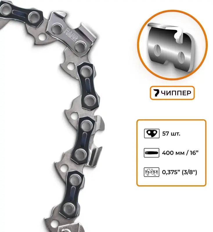 Цепь пильная 57 звеньев, 400мм (16), 3/8 1.3 S57-3/8-1.3 RAGE 594657; УТ-00000248