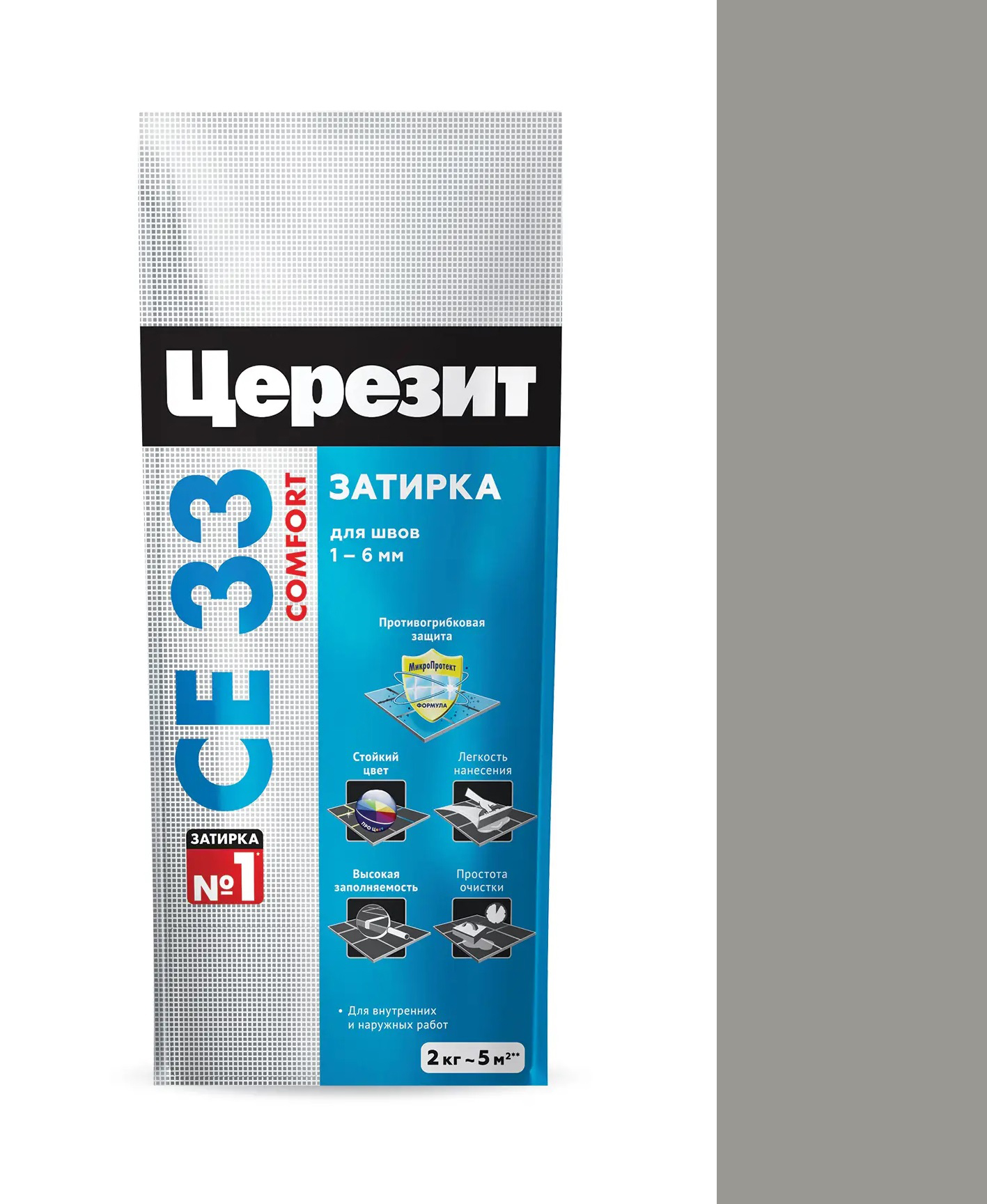 —Затирка CERESIT СЕ33 S №07 серый 2-5мм 2кг 790889; 11588336